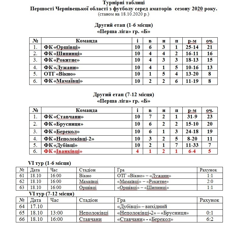 2020 футбольний рік. У Кіцманській зоні (група "Б") взяли участь команди з трьох районів (Кіцманський, Заставнівський та Новоселицький). 12 колективів у двох підгрупах спершу визначили шістку кращих команд, а на минулих вихідних стало відомим ім'я чемпіона Першої Ліги "Б" сезону 2020 року.