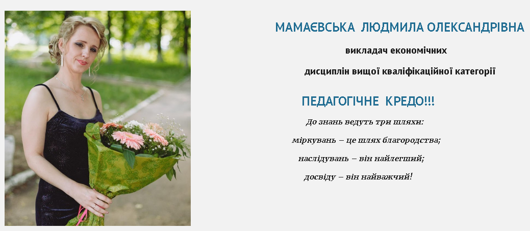- Мамаєвська Людмила Олександрівна – друге місце в розділі «Освітній вебсайт викладача» за вебсайт з дисципліни «Основи економічної теорії».