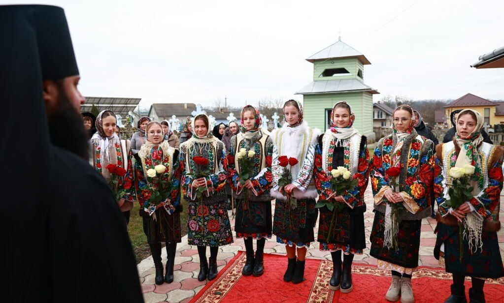 На церковному подвір’ї Його Преосвященство тепло зустрів староста парафії Сорохан Василь Денисович Сорохан, а також діти парафії, які привітали архіпастиря зворушливими віршованими словами, наповнивши день атмосферою духовної радості та любові.