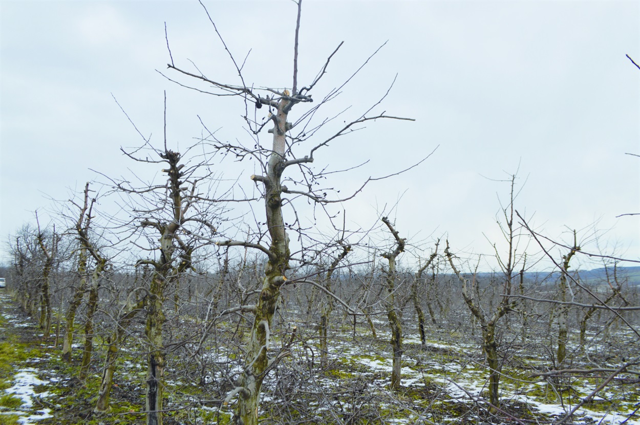 — Зараз ми завершили обрізку дерев. Оскільки зима тепла, роботи розпочали ще в січні. Правильне формування крони дуже важливе для майбутнього урожаю. Крім того, ми вибраковуємо хворі, некондиційні дерева і замінюємо їх новими саджанцями, — розповідає Василь Григорович. — Тут є сорти Чемпіон, Еліза, Флоріна, Фуджі, Айдарет та інші. Саджанці вирощуємо самі в розсаднику, нащеплюємо їх і щороку робимо сортопоновлення саду.